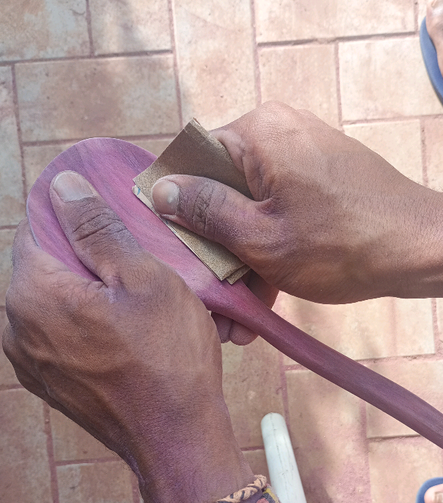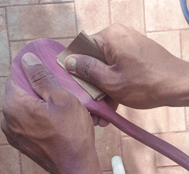 O processo é todo feito à mão, com cuidado e respeito pela matéria-prima. A madeira é tratada conforme suas características naturais, permitindo que forma, textura e veios conduzam ao desenho final. Assim surgem peças autorais, onde técnica, imaginação e sensibilidade caminham juntas.